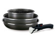 Ky set enësh për gatim kursen hapësirë sepse të gjitha pjesët mund të vendosen njëra mbi tjetrën. Falë dorezës së lëvizshme, mund të përdoren edhe në furrë.