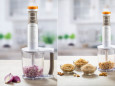 Në set përfshihet edhe një enë 700ml për grirje, me dy tehe prej çeliku inox. Përdoreni për të copëtuar arrore, bimë, çokollatë, sheqer, biskota dhe jo vetëm. Grirësja ka edhe një kapak, i cili nuk lejon ushqimin të spërkatet në kuzhinë, dhe po ashtu absorbon dridhjet gjatë përzierjes.