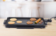 Skara elektrike Delimano është zgjidhja ideale për këdo që dëshiron të gatuajë shpejt, lehtë dhe me shumë shije – direkt mbi tavolinë. Me një dizajn praktik dhe sipërfaqe të kombinuar, kjo pajisje sjell dy funksione në një: njëra anë për grill, tjetra pllakë e sheshtë. Kjo do të thotë që mund të përgatisësh hamburgerë, shishqebap, perime, pancakes, bukë të thekur dhe shumë më tepër – të gjitha në një pajisje të vetme.