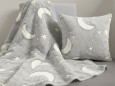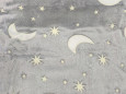 Yjet dhe hëna në dizajnin Stars shkëlqejnë në errësirë. Gjatë ditës, batanija mbledh dritë. Gjatë natës, ajo ndriçon butë – duke krijuar një ambient të qetë, të sigurt dhe magjik.